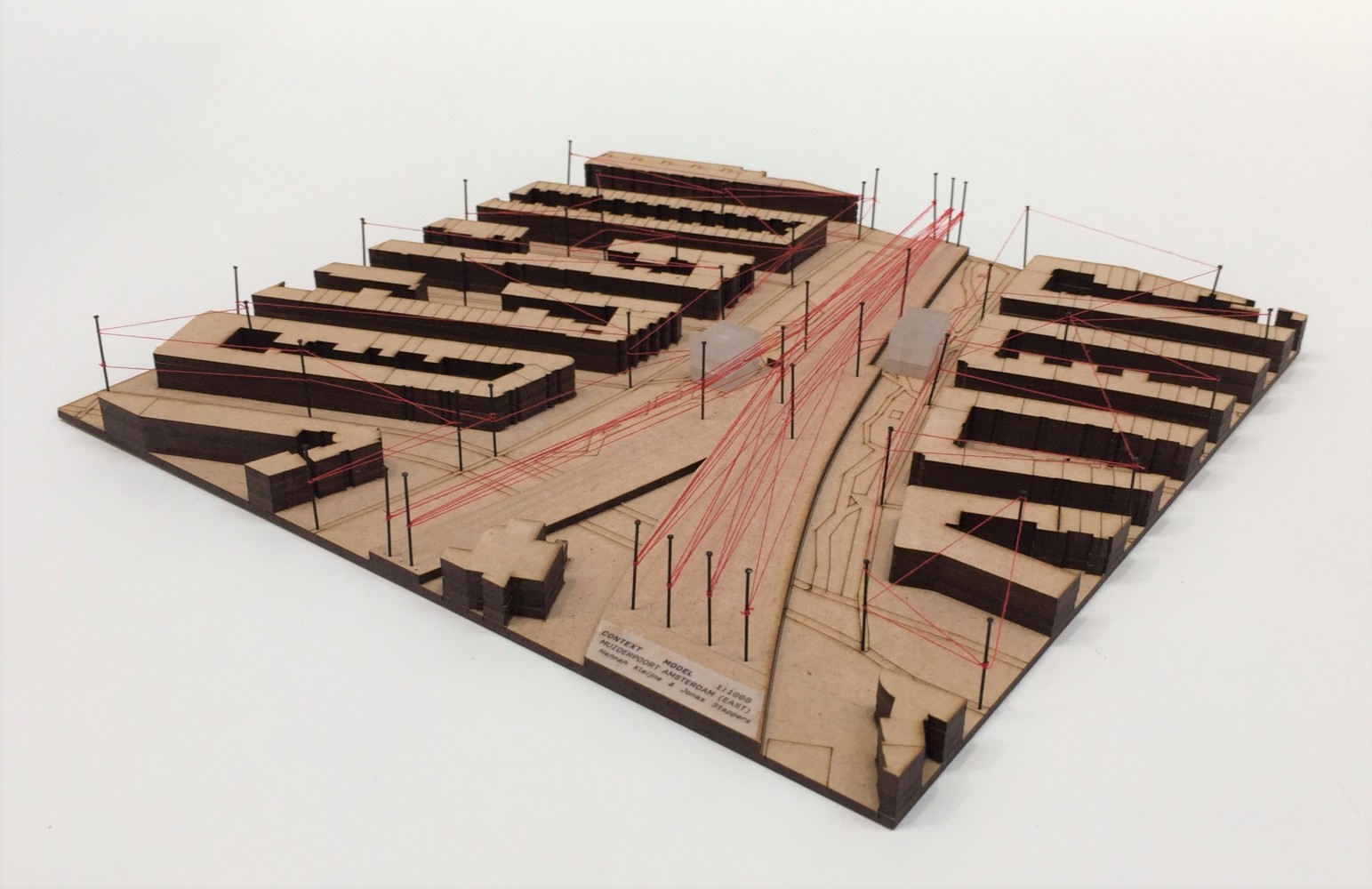 This project was part of the minor House of the future, where we were asked to design a custom future scenario (2050) and a corresponding house of the future. Within a world where living space and resources are becoming a lot more scarce, we designed a house where people could live and share stuff with each other. By using height and 3d-configuration we tried to design a house that exists of only one continues room but with a lot of different living atmospheres. We designed a structural typology which operates as construction, storage system and transportationsystem. This typology is modular and serves as carrier of the architectural cladding but also as storage system. This way the building functions also as transportation node in the urban setting, by connecting the existing neighbourhood to a new transportation system. To present the design we designed a presentation board where one central section-drawing explains the house and scenario, and therefore tells the whole story supported by other drawings and models.