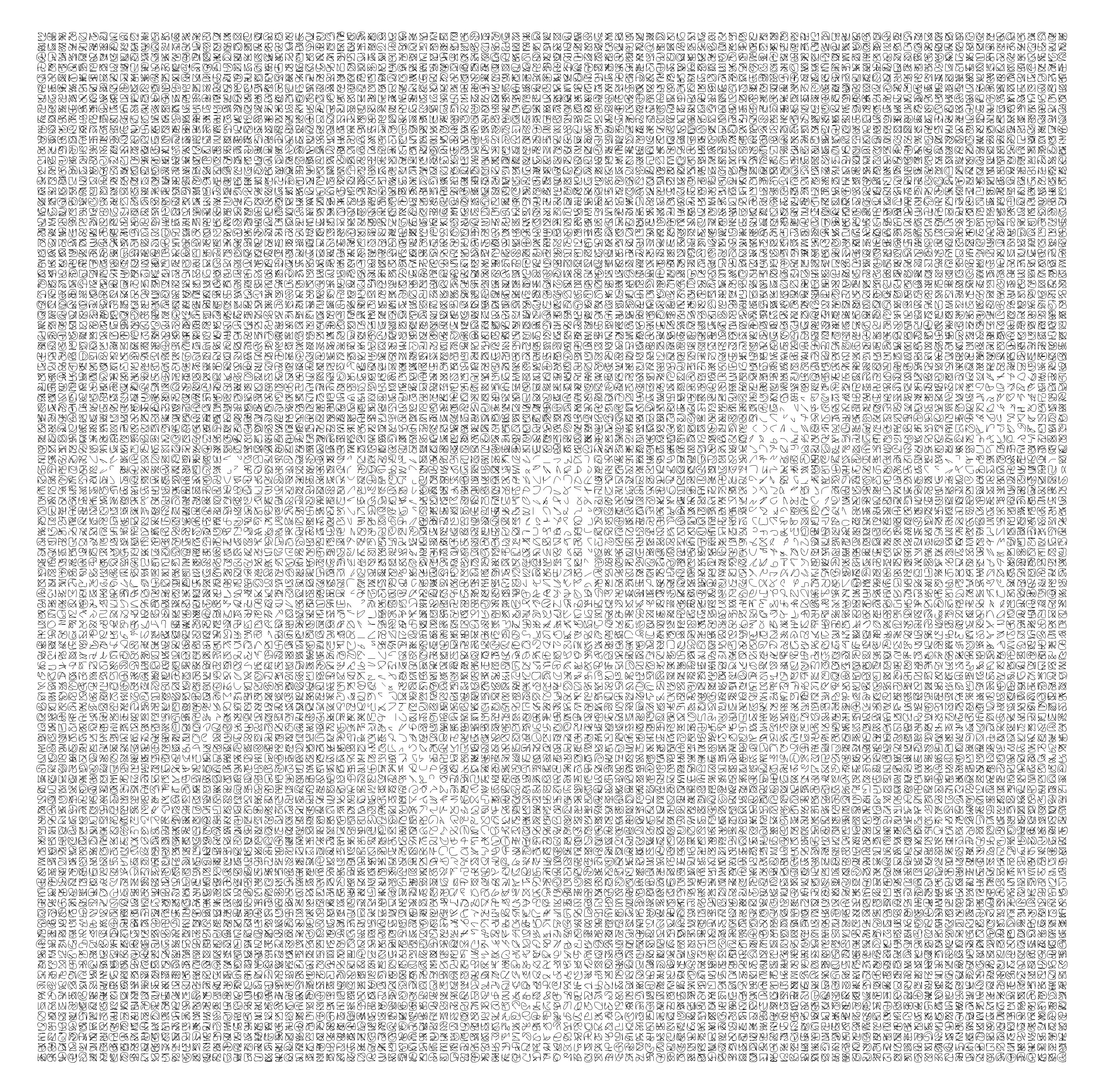 2d generative graphics experiment. Image rasterization with a grid of randomly genarated signs. Inspired by Sander Sturing