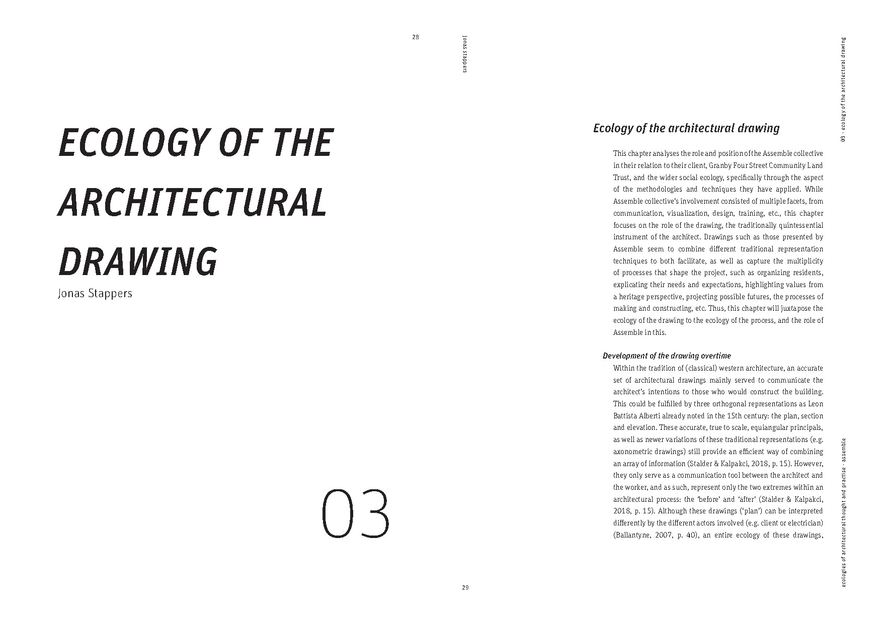 In my chapter I tried to delineate the 'ecology' of the methodologies and drawing techniques Assemble applied during their practise.