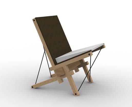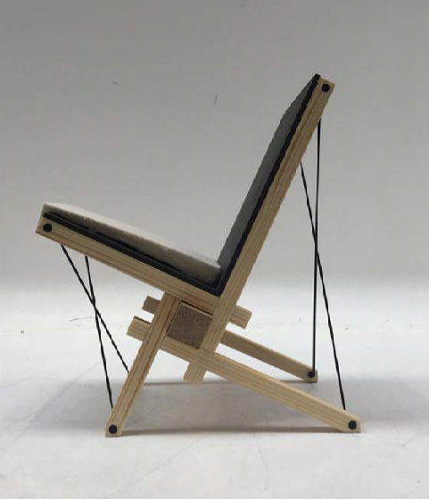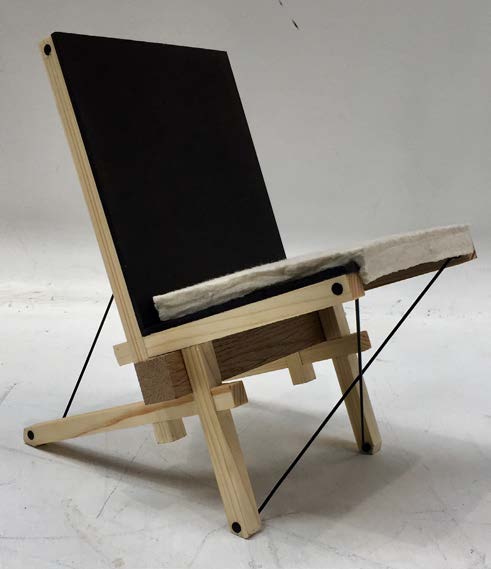 The design of this chair is inspired by the Japanese house; Nojiri-Ko. Whereas the whole building folds around the orthogonal wood grid structure, likewise the design of the chair also keeps orthogonality but with a twist. This ideology results in the main oak beam where all other elements placed around it. Like how the columns in the building proceed from inside to nature outside, the oak beam is the only element that goes beyond the width of the other elements and thereby relates to the adjacent freespace. The beam is raised by the chair-legs, keeping contact with the floor minimal, comparable to how the columns raise the building above the terrain and create a subtle connection to surrounding nature. Using the main beam as a guiding and starting element, the other chair components are gradually added around by using clear and demountable connections, which relates to the sequacious building process of the house. By stacking the different elements together and tightening the steel rods as last elements, a stiff and harmonious entirety is established. To achieve a natural and pure feel with seamless details the chair is mainly made of wood corresponding to the house and traditional Japanese architecture. Some steel is used in the detailing, to establish a modern aspect to the traditional Japanese language. To add warmth and pleasantness, a felt cushion is added allowing for comfortable human contact, likewise the interior of the Japanese house creates a soft layer within the rigid and harmonious architecture.